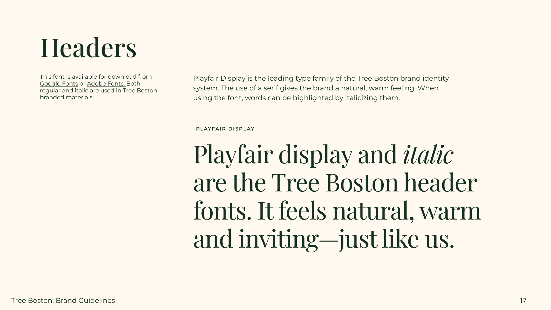 Tree Boston is a nonprofit that works with community members to plant, preserve, and advocate for trees. We created a flexible brand identity, brand strategy, and animated launch content to help amplify their mission and tell their story.